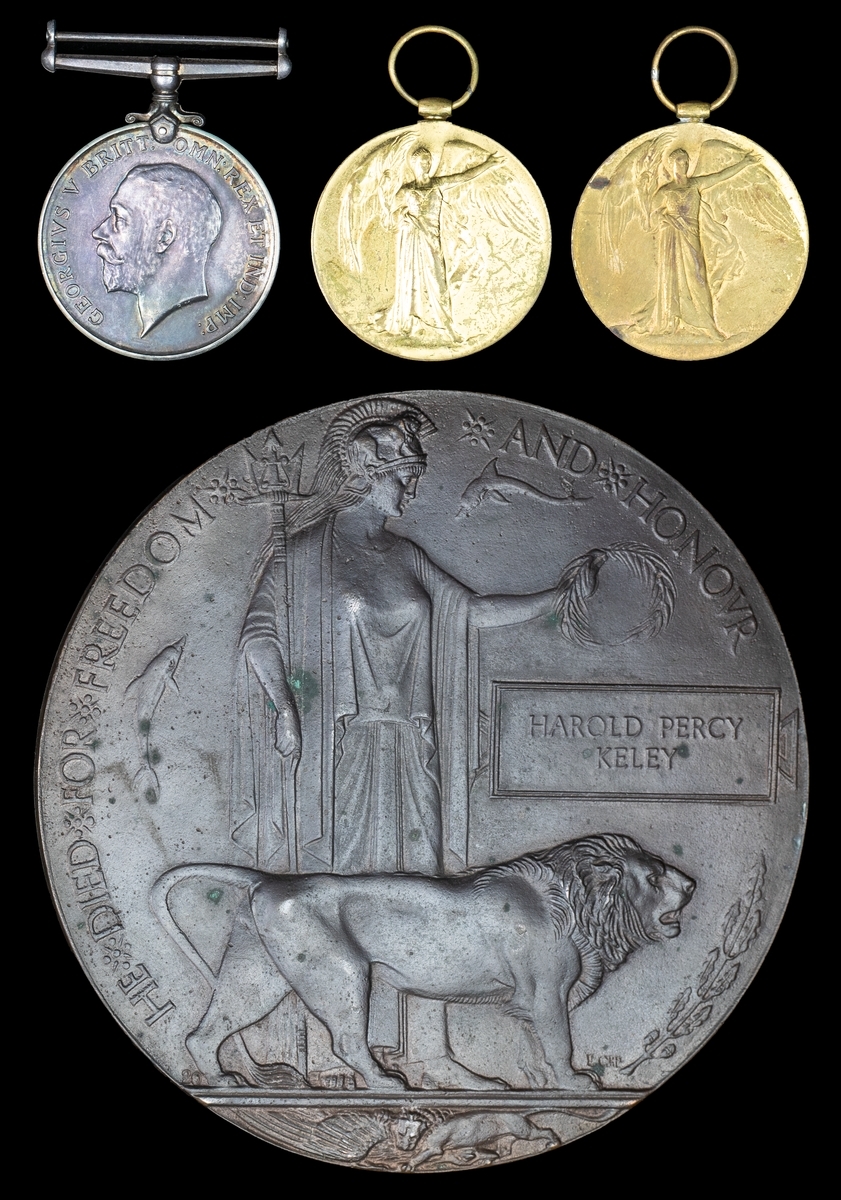 Harold Percy Keley was born at Port Adelaide, South Australia on 11 November 1892. Educated at Granville state school he was employed in the Blue mountains, Sydney when he enlisted in the 19th Battalion A.I.F. on 6 June 1915. He left Australia on 25 June 1915 taking part in the Gallipoli campaign before entering the French theatre where he was killed on 14 November 1916. He is commemorated on the Australian War Memorial Roll of Honour, Kingscote Kangaroo Island WW1 Roll of Honour, Kingscote War Memorial, Kingscote War Memorial, Penneshaw Kangaroo Island Men Roll of Honor WW1, Villers-Bretonneux Memorial; sold together with copied research.