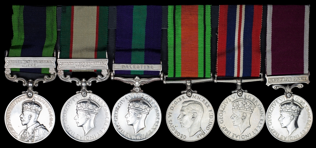 India General Service 1908-35, 1 clasp, North West Frontier 1935 (5490787 Sjt. C. H. Batchelor. Hamps. R.); India General Service 1936-39, 1 clasp, North West Frontier 1936-37 (5490787 Sjt. C. H. Batchelor. Hamps. R.); General Service 1918-62, 1 clasp, Palestine (5490878. W.O. Cl. 3. C. H. Batchelor. Hamps. R.), minor official correction to unit; Defence and War Medals 1939-45; Army L.S. & G.C., Regular Army, G.VI.R. (5490878. W.O. Cl. 2. C. H. Batchelor. Hamps. R.), light contact marks, overall very fine (6)