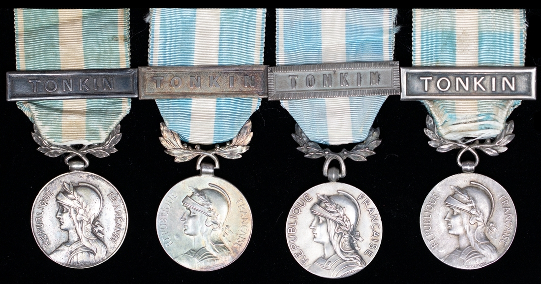 (x) France, Republic, Colonial Medal, 1 clasp (4), Tonkin, three stamped 'Georges Lemaire', two with silver marks, some with heavy contact wear, about very fine to good very fine (4)