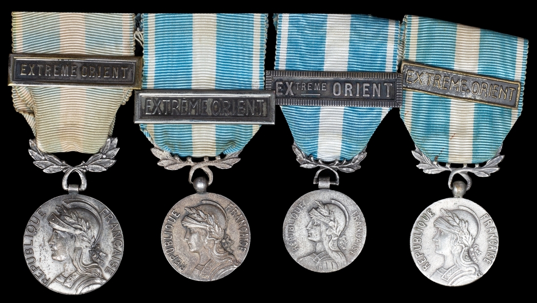 (x) France, Republic, Colonial Medal, 1 clasp, Extreme Orient (4), generally about very fine and very fine overall (4)