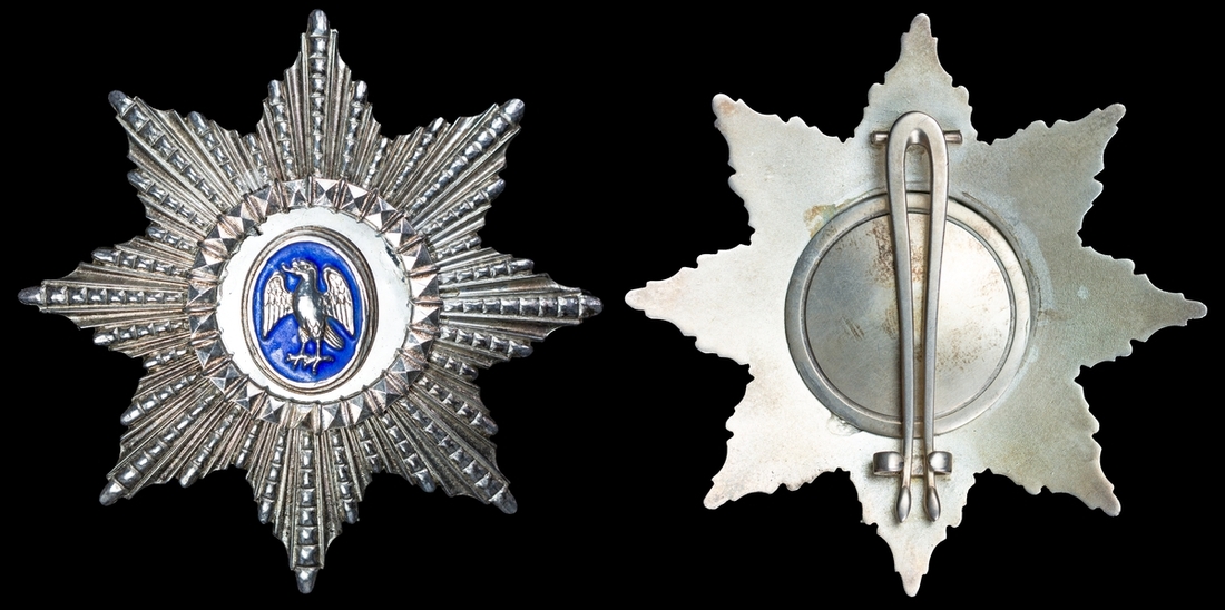 (x) Iceland, Republic, Order of the Falcon, Grand Knight's breast Star, by Kjartan Ásmundsson, Reykjavik, 69mm, silver and enamel, back and centre are loose, otherwise very fine, in its fitted case of issue