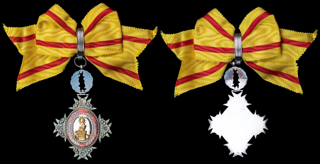 The Order of the Sacred Crown is awarded exclusively to female recipients, and it is the scarcest of the multi class Japanese orders. While the number awarded prior to the end of the Second World War is not known, figures from the Japanese Government show that approximately 60-80 were awarded per year since Japan recommenced awarding decorations in 1964.