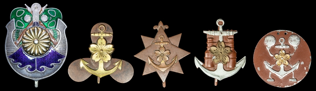 (x) Japan, Empire, a selection of Japanese Navy qualification and service Badges, including 1st Class Damage Control, 2nd Class Lookouts, Seamanship, Mine Operations & Engine Operations, very fine (5)