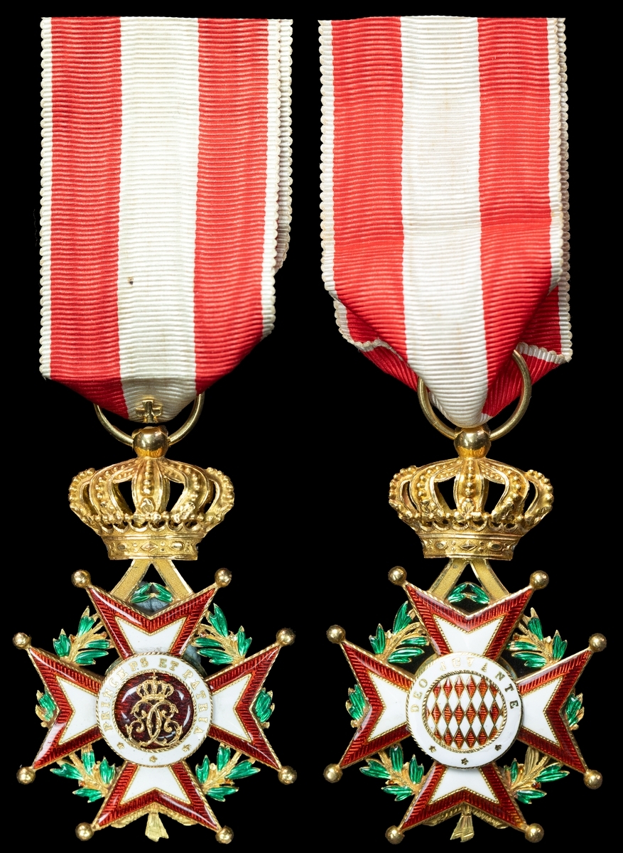 (x) Monaco, Principality, Order of St Charles, breast Badge, 57mm including crown suspension x 35mm, gold and enamel, good very fine