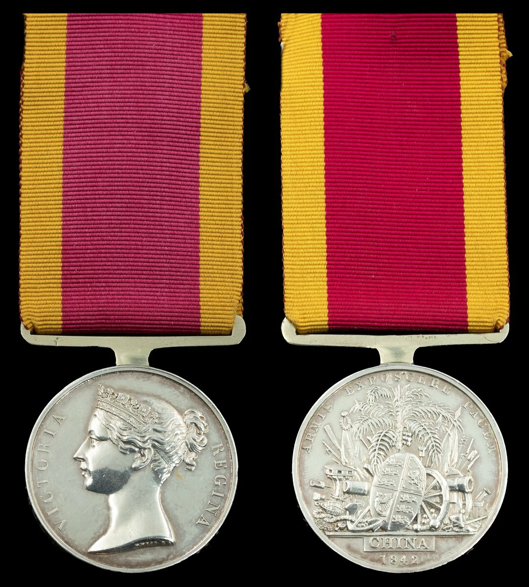 The China 1842 awarded to Able Seaman D. Davis, Royal Navy, who saw service against the slavers off West Africa - notably in the capture of the Formidable - and the Dyak pirates of Borneo, including an action in which he was wounded whilst being pinned to the mast by a cutlass