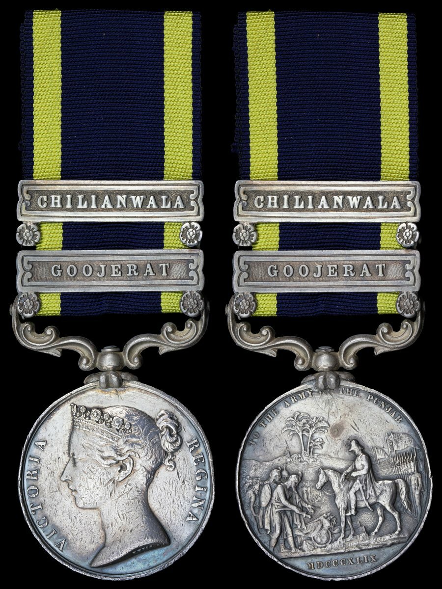 John McGuire was born at Woodford, Essex in 1814 and joined the 9th Lancers at Dublin in April 1825, at that time a 14 year old shoemaker. Made Trumpeter in September 1825, he was made Corporal in September 1841 and Sergeant in April 1842. He was eventually discharged in May 1853, having shared in the Sutlej campaign (Medal & clasp) and taken an L.S. & G.C. Medal in April 1853; sold together with copied research.