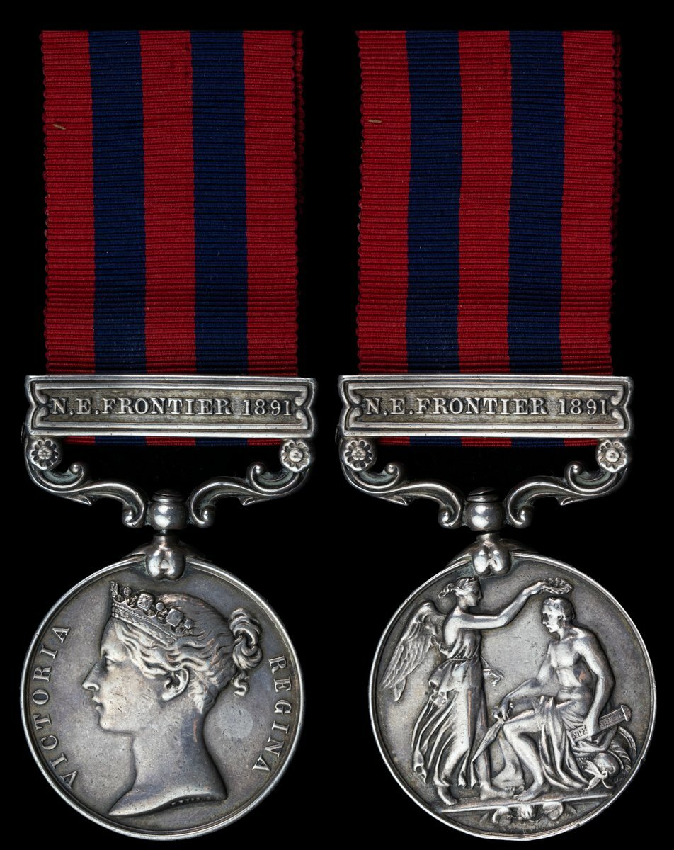 India General Service 1854-95, 1 clasp, N. E. Frontier 1891, (3954 Bugler J. Clarke. 4th Bn. K.R.Rif.C.), suspension slack, minor contact wear, overall very fine