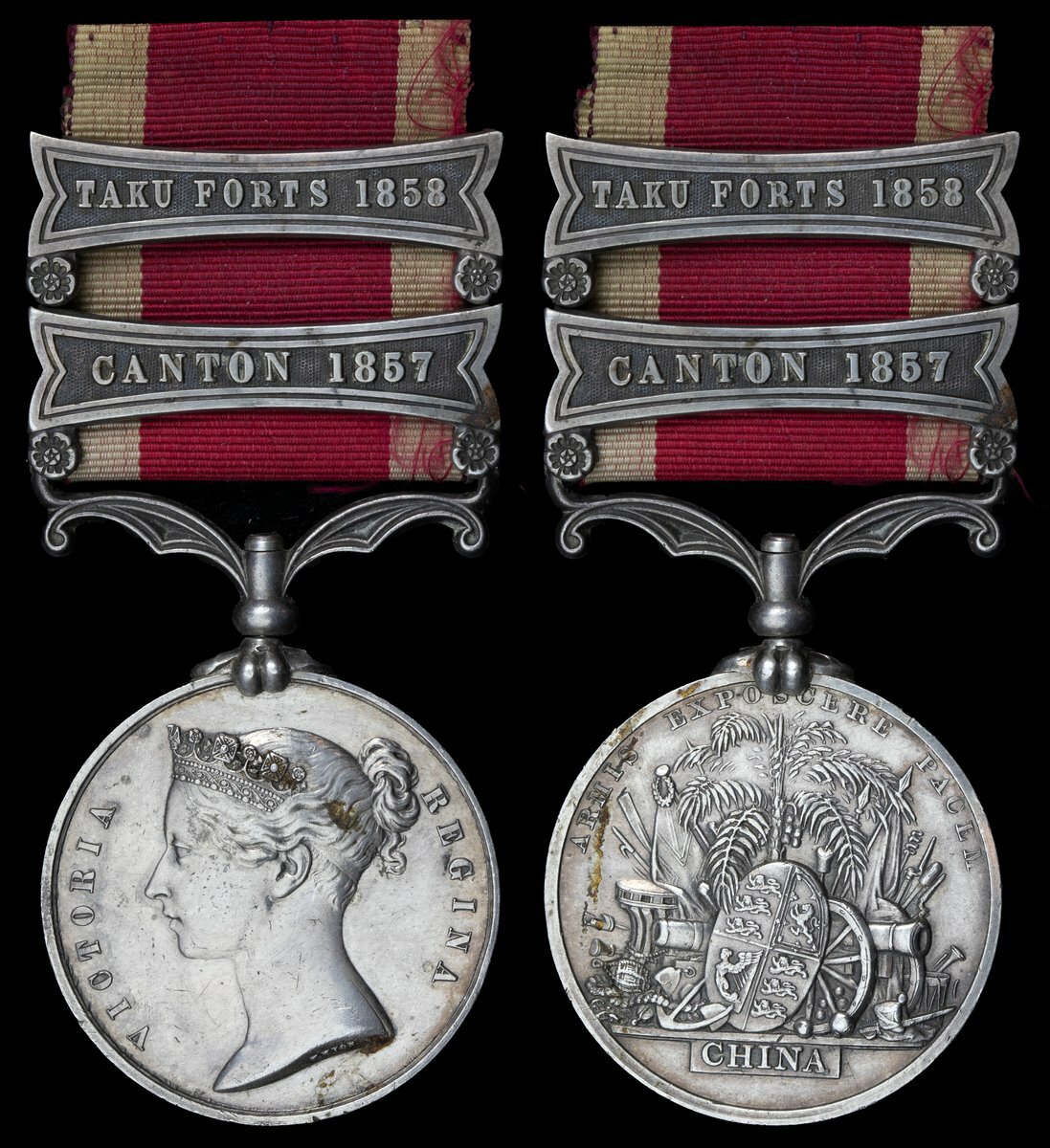 Second China War 1857-60, 2 clasps, Canton 1857, Taku Forts 1858, an unnamed example, very fine