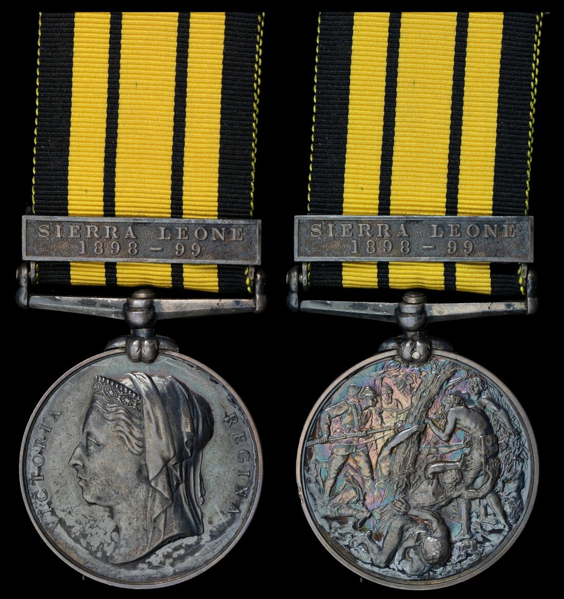 (x) East and West Africa 1887-1900, 1 clasp, Sierra Leone 1898-99 (1864 Pte. H. Davis 3/ W.I.R.), some edge bruising, suspension slightly loose otherwise about very fine