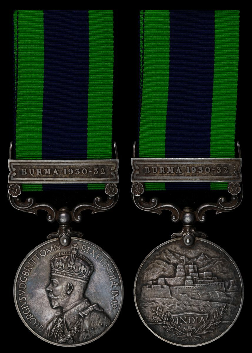 George William Legg was born at Upton Park, Essex in April 1905, the son of Henry and Alice Patten. Moving to London in his youth he appears upon a City Directory in 1925 aged 20 and presumably enlisted not long afterwards. Serving in Burma with 1st Battalion, The Buffs he died early the next year in January 1933 at West Ham. Legg's mother Alice appears upon his pension documents and his medal was issued to his father on 22 May 1936; sold together with copied research.