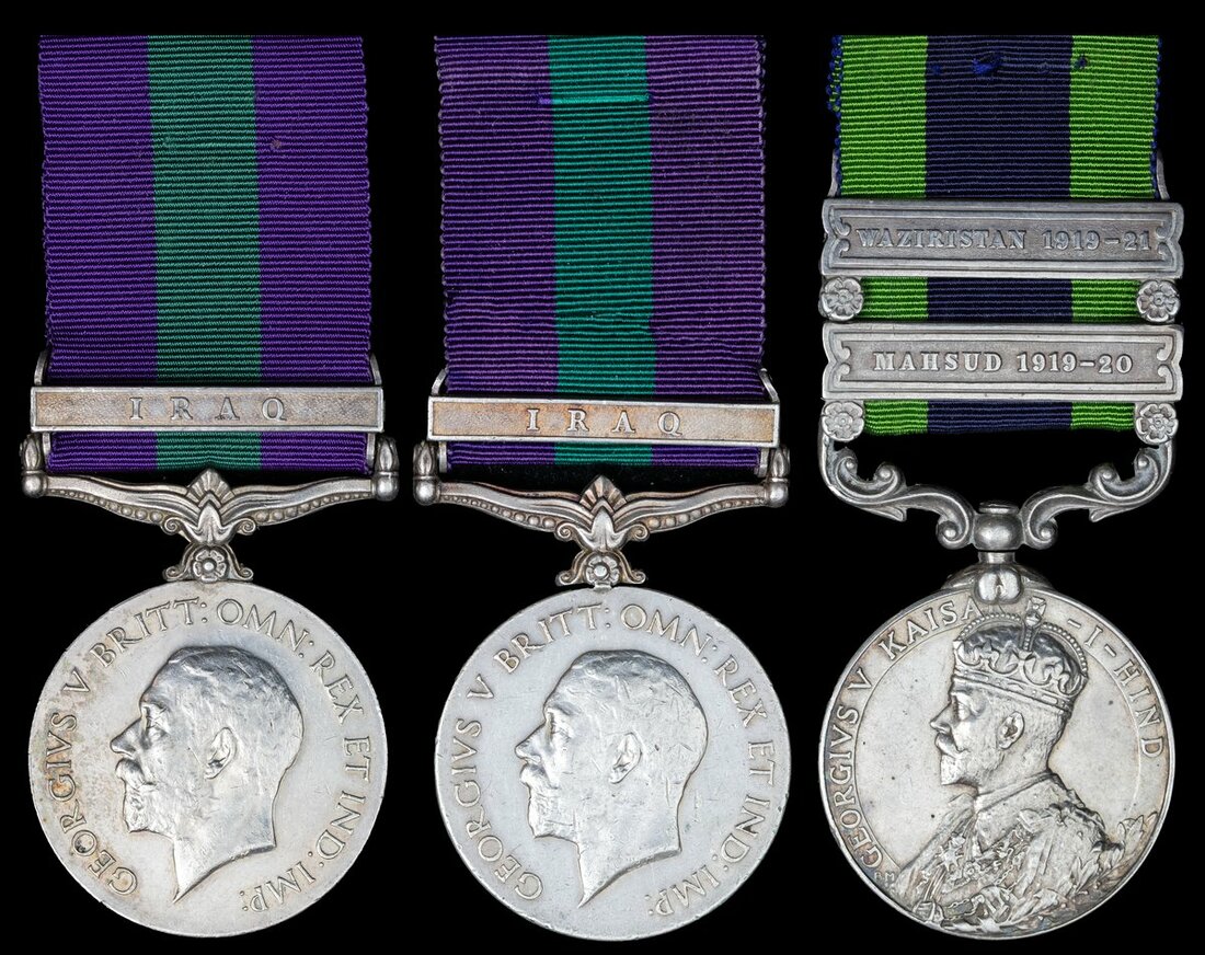 India General Service 1908-35, 2 clasps, Mahsud 1919-20, Waziristan 1919-21 (1636 Sepoy Santa Singh, 3-34 S.P.); General Service 1918-62, 1 clasp, Iraq (2) (12702 Pte. E. Marsh. R.A.M.C.; 1014 Sepoy Prem Singh, 52-Sikhs.), light contact marks overall, generally very fine (3)