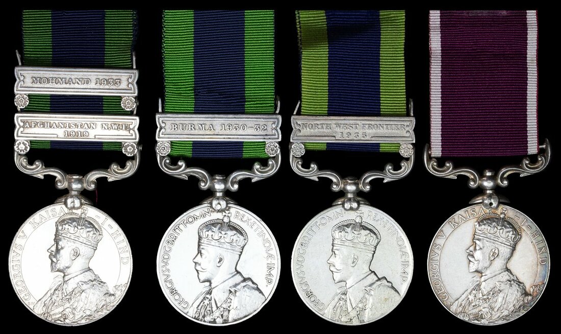 India General Service 1908-35, 1 clasp, Burma 1930-32 (1-A-12222 Sepy Rulia Ram, 1 I.H.C.), edge bruises very fine; 1 clasp, North West Frontier 1935 (MT-503389 H-Man Mohain Singh, R.I.A.S.C. (M.T.)); 2 clasps, Afghanistan N.W.F. 1919, Mohmand 1933 (546 Sowar Farzand Ali Shah 27 Light Cavalry), engraved in capitals, very fine; Indian Army L.S. & G.C., G.V.R. (4262 L-Nk. Battan Singh, 10-10 Baluch R.), suspension loose and needs repinning (4)