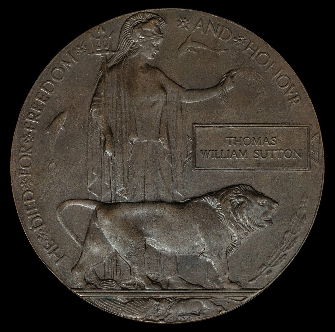 Great War Bronze Memorial Plaque (Thomas Wiliam Sutton), very fine
