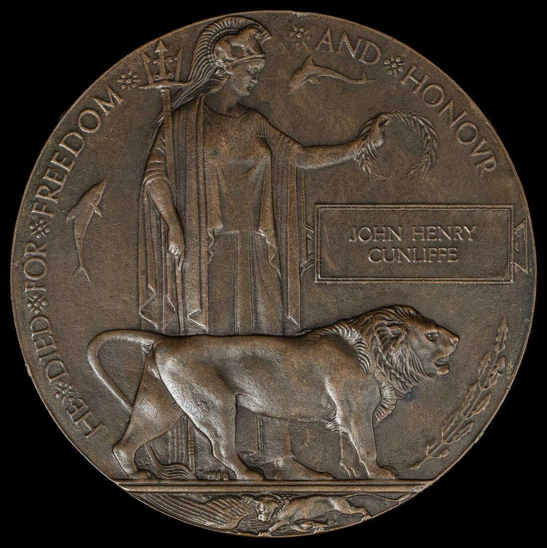 Great War Bronze Memorial Plaque (John Henry Cunliffe), good very fine