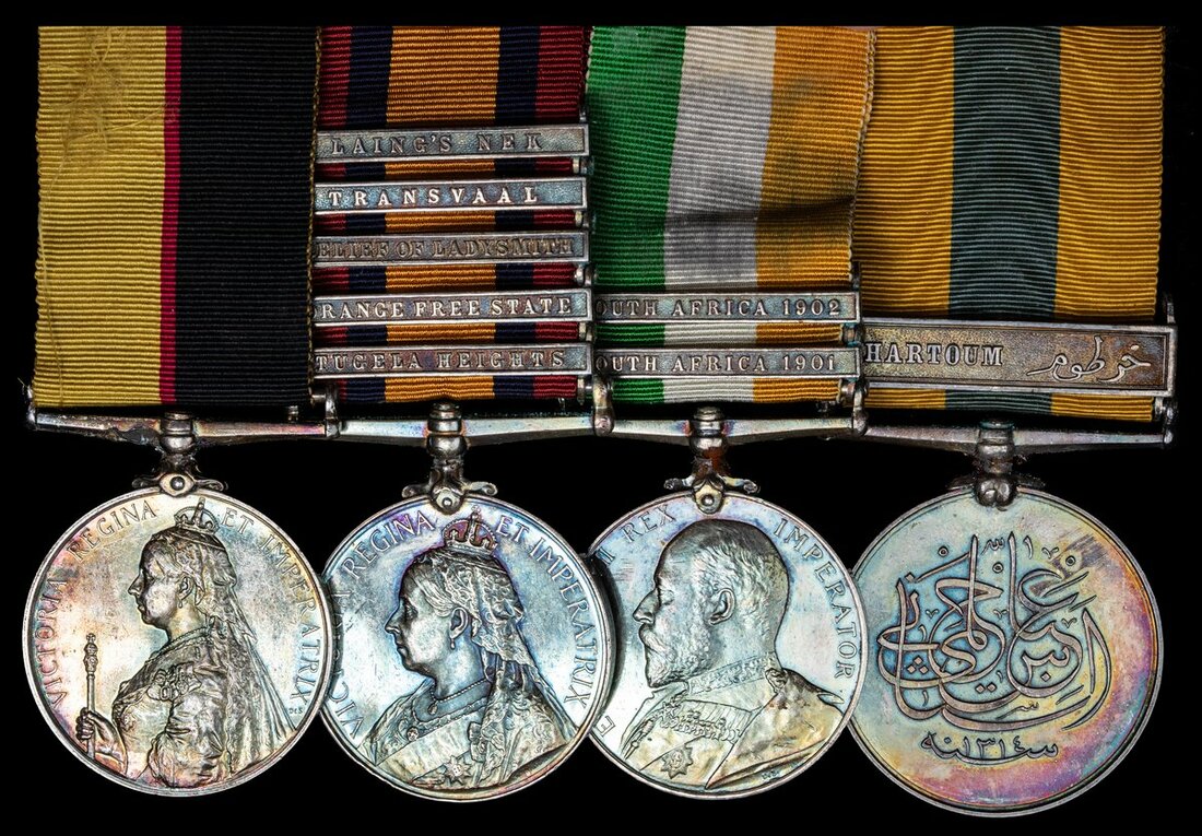 Queen's Sudan 1896-98 (5362. Pte T. Waring. 2/Lan: Fus:); Queen's South Africa 1899-1902, 5 clasps, Tugela Heights, Orange Free State, Relief of Ladysmith, Transvaal, Laing's Nek (5362 Pte J. Wareing. Lanc. Fus:); King's South Africa 1901-02, 2 clasps, South Africa 1901, South Africa 1902 (5362 Pte T. Waring. Lanc: Fus:); Khedive's Sudan 1896-1908, 1 clasp, Khartoum (5362. Pte. T. Waring. 2nd L.F.) engraved, lightly toned very fine (4)