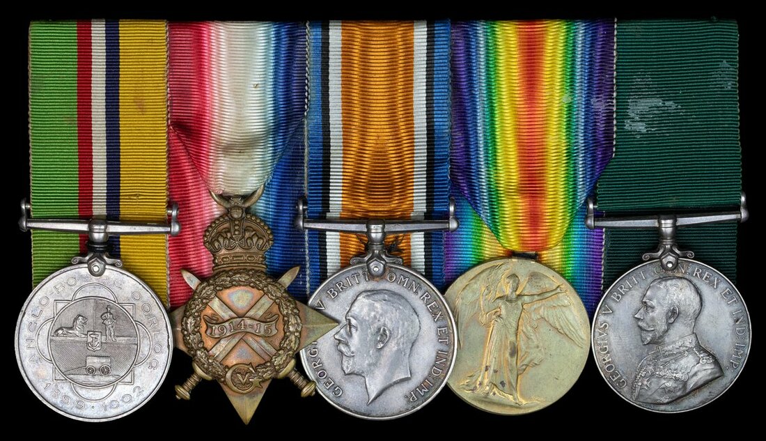 Anglo-Boer Oorlog Medal 1899-1902 (Burger J. C. Anthonissen); 1914-15 Star (Pte. J. C. Anthonissen. 10th Infantry.); British War and bi-lingual Victory Medals (Pte. J. C. Anthonissen. 3rd S.A.H.); Colonial Auxiliary Forces L.S. & G.C., G.V.R. (Lt. J. C. Anthonissen. Wit. Rifles.), minor edge wear, overall good very fine (5)