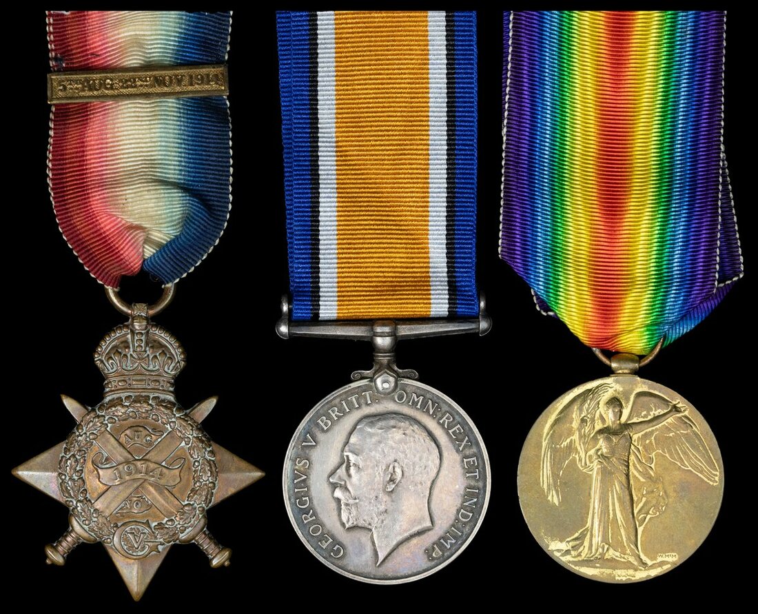 Joseph Trinder enlisted on 11 January 1912 and entered the war in France on 13 August 1914. He was discharged on 22 December 1914 as a result of sickness and is further entitled to a Silver War Badge (82606). His Medal Index Card notes a clasp being issued in February 1939.