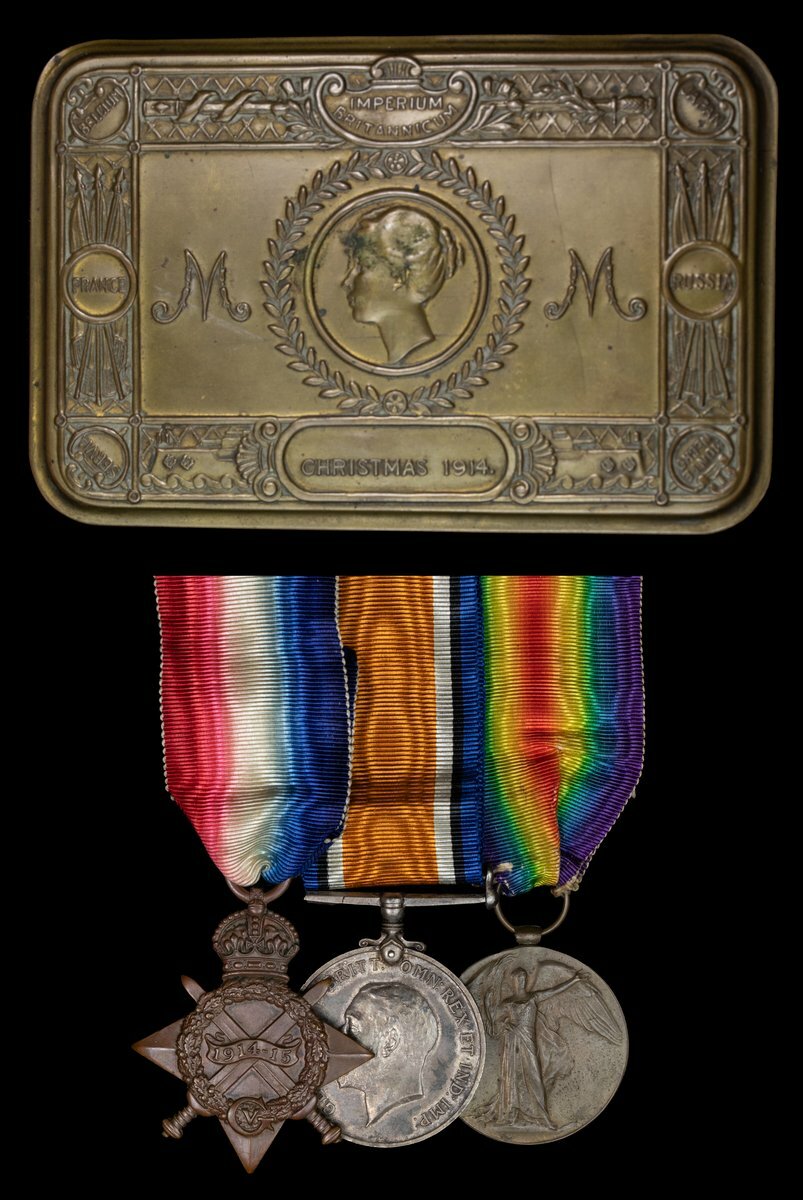 1914-15 Star (J.9459, W. H. Turner, Sig., R.N.); British War and Victory Medals (J.9459 W. H. Turner. L. Sig. R.N.), sold together with a Princess Mary's Christmas Tin, including Christmas Fund Cigarette packet with one cigarette remaining, Princess Mary Christmas card, and the above quoted letter, good very fine (3)