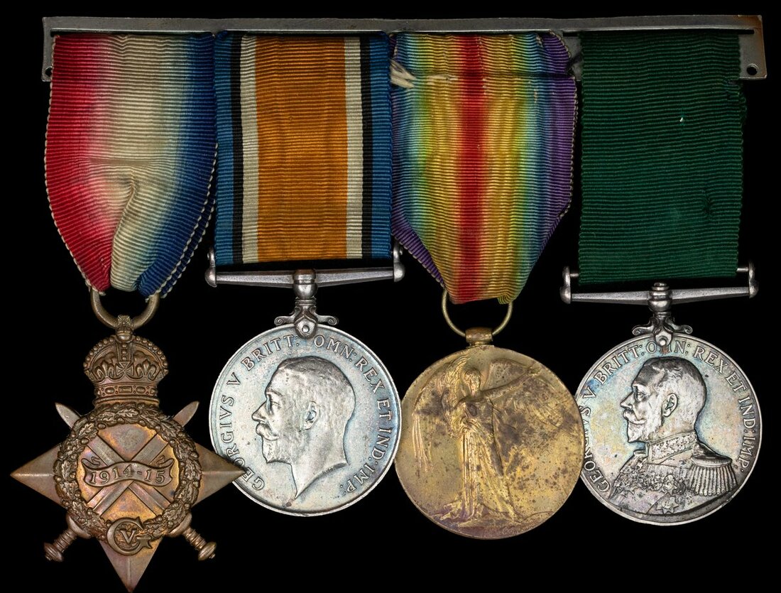 James Pollard was born at St Albans, Hertfordshire in October 1871 and was a merchant seaman living at Liverpool upon joining the Royal Naval Reserve in July 1896. Besides his Great War Trio, he was also issued with a Silver War Badge (No. 29042) in August 1918 for his troubles; sold together with War Badge certificate and Pension/Gratuity Certificate.