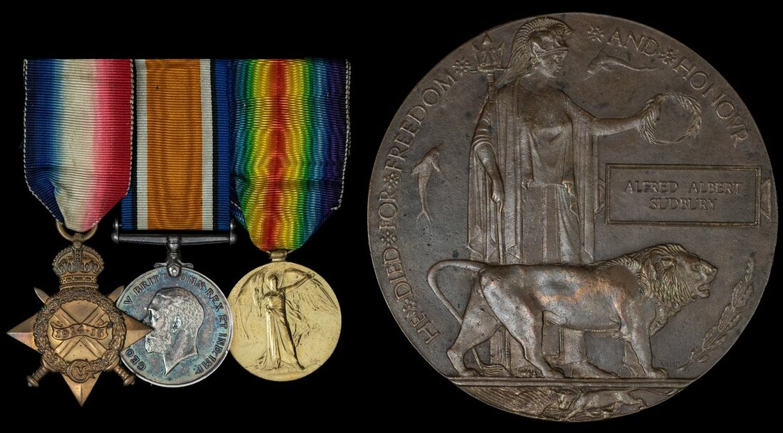 A Great War Casualty Group of three to Lance Corporal A. A. Sudbury, Nottinghamshire and Derbyshire Regiment, who was killed in action on 21 March 1918