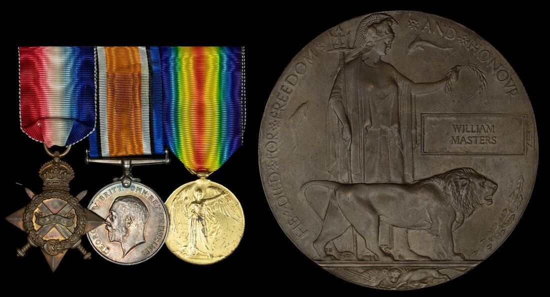 A Great War casualty group of three to Private W. Masters, Royal Sussex Regiment, who died of wounds on 6 April 1916