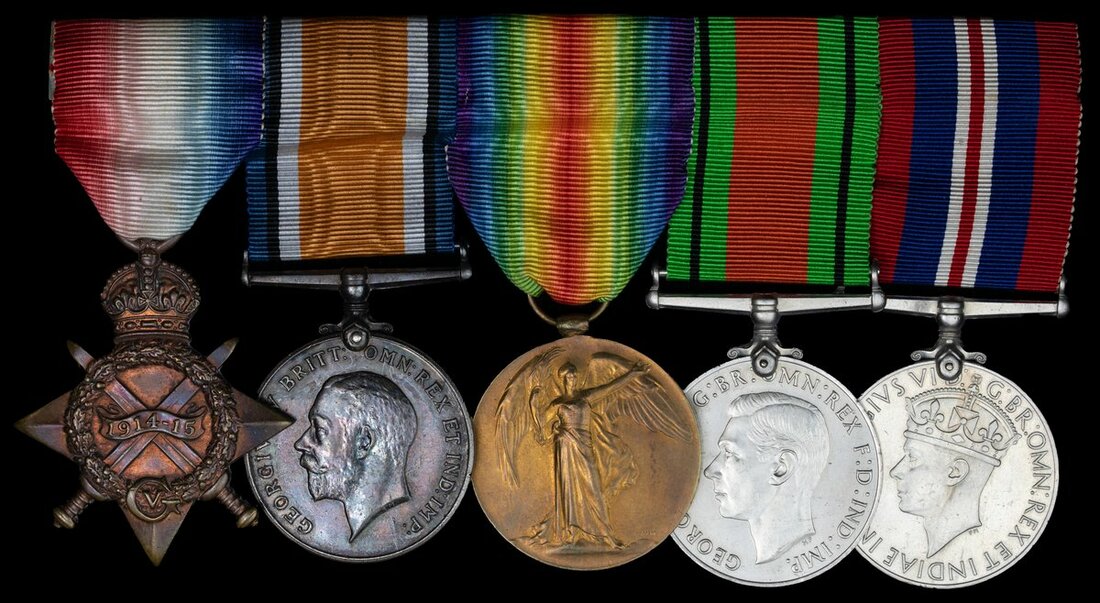 1914-15 Star (Mid. C. J. W. Branson, R.N.); British War and Victory Medals (Lieut C. J. W. Branson. R.N.); Defence and War Medals 1939-45, mounted as worn, good very fine (5)