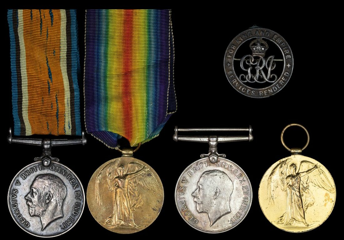 Reginald Coupland Sharpe enlisted on 4 October 1915 and entered the war in France on 8 May 1916. Suffering a gunshot wound to the hand on 1 July 1916 he returned to Britain on 6 July 1916 and discharged on 13 January 1919; sold together with a silver war badge (673159) and a photograph of the recipient wearing the badge.