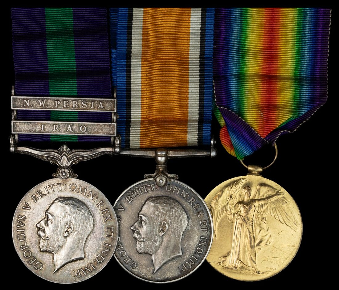 Appointed to the rank of Captain while commanding a Company of the 84th Punjabis on 12 August 1917 after they left the North West Frontier and were posted to Mesopotamia. He did not join them for their campaigns after the war ended but was appointed to the Staff on 5 May 1918. In this capacity he became entitled to the Iraq and North West Persia clasps; sold together with copied research.