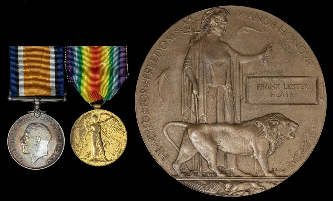 A Great War Casualty Pair to Private F. L. Heath, Oxfordshire and Buckinghamshire Light Infantry late Nottinghamshire and Derbyshire Regiment who was killed in action on 3 May 1917