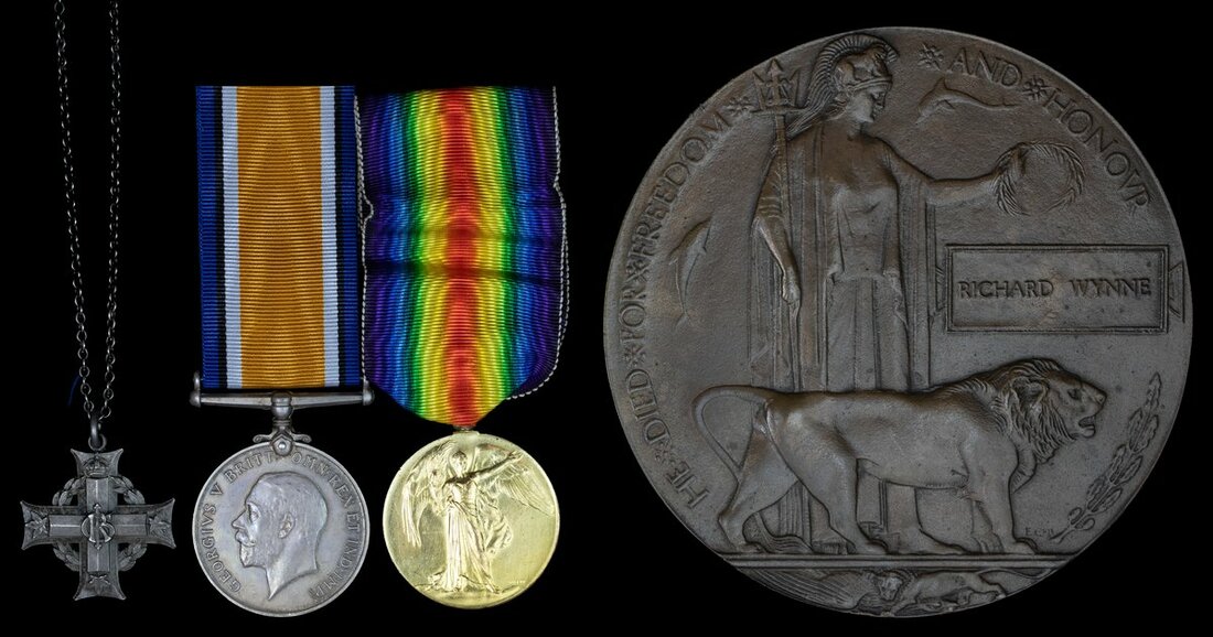 British War and Victory Medals (2380645 Pte. R. Wynne. 8-Can. Inf.); Great War Bronze Memorial Plaque (Richard Wynne); Canadian Memorial Cross, G.V.R. (2380645 Pte. R. Wynne.), sold together with its original forwarding slip and Commonwealth War Graves documents, good very fine (4)