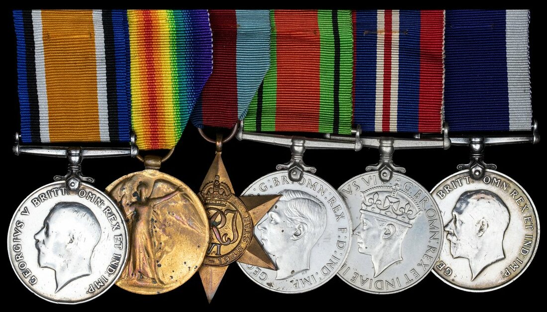British War and Victory Medals (R.M.A. 14798 Gr. W. J. Parsons.); 1939-1945 Star; Defence and War Medals 1939-45; Royal Navy L.S. & G.C., G.V.R. (PO.214798 W. J. Parsons. Sgt. R.M.), mounted for display the pair and LSGC medals polished fine otherwise very fine (6)