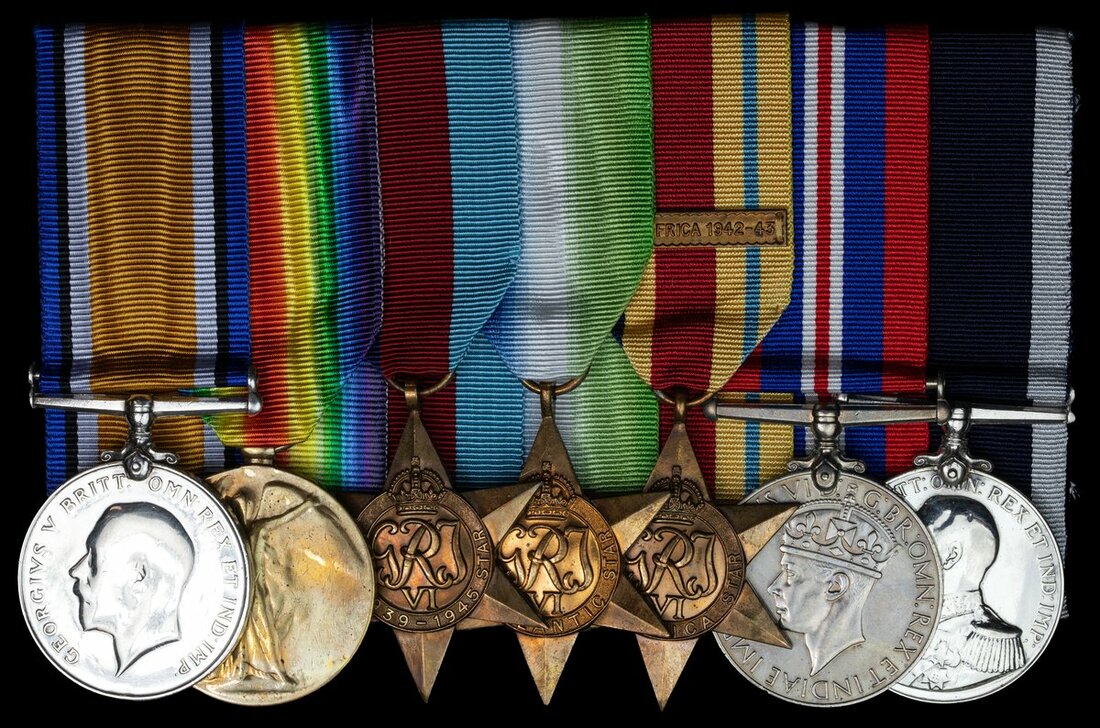 British War and Victory Medals (K. 28093 E. Lawes, Sto. 1, R.N.); 1939-45 Star; Atlantic Star; Africa Star, clasp, North Africa 1942-43; War Medal 1939-45; Royal Navy L.S. & G.C., G.V.R. 2nd issue (K. 28093 E. Lawes, Mech., H.M.S. Nelson), the Great War and long service awards heavily polished, fair, the remainder extremely fine (7)