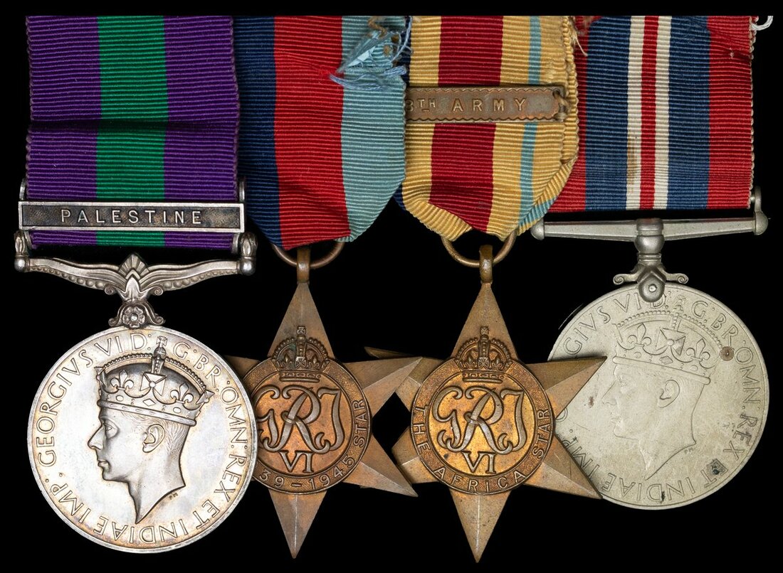 General Service 1918-62, 1 clasp, Palestine (4975151 Pte. J. H. Hatcliffe. Foresters); 1939-1945 Star; Africa Star, clasp 8th Army; War Medal 1939-45, very fine (4)
