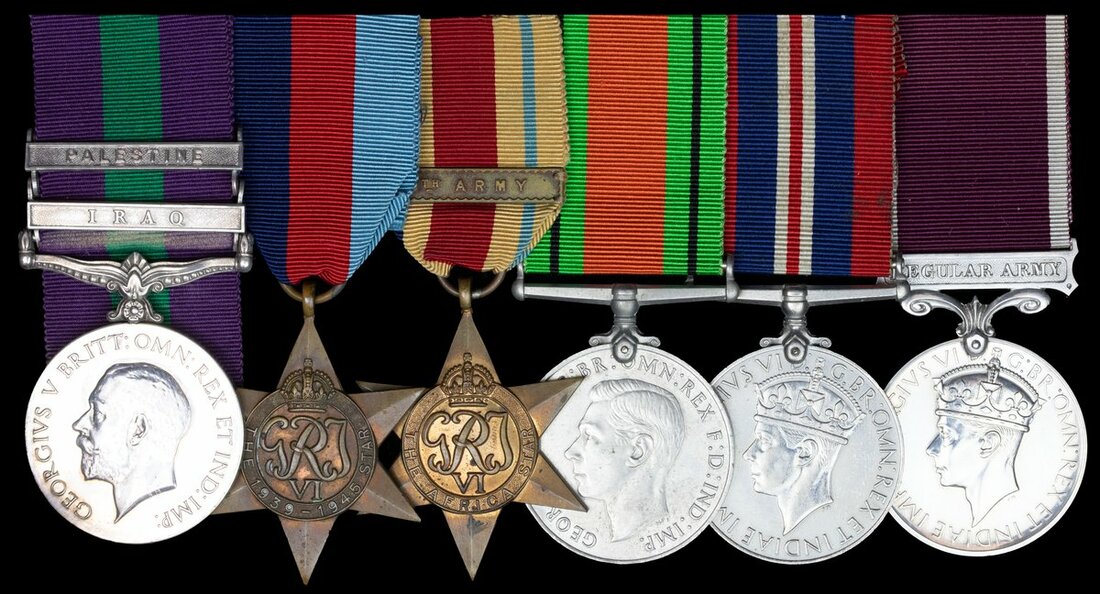 General Service 1918-62, 2 clasps, Iraq, Palestine (344025 A-Cpl. E. A. G. Makepeace. R.E.), the second loose on the riband; 1939-45 Star; Africa Star, clasp, 8th Army; Defence and War Medals 1939-45; Army L.S. & G.C., G.VI.R., (1855128 W.O. Cl. III. E. A. G. Makepeace.), good very fine overall (6)
