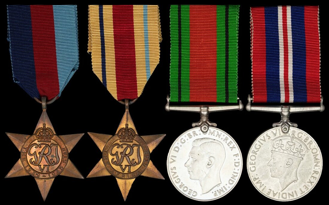 A well-documented group of four awarded to Private A. J. Abbott, 2/5th Battalion, Essex Regiment who was taken Prisoner of War at the First Battle of Alamein when the 18th Brigade was overrun at Ruweisat Ridge on 1 July 1942