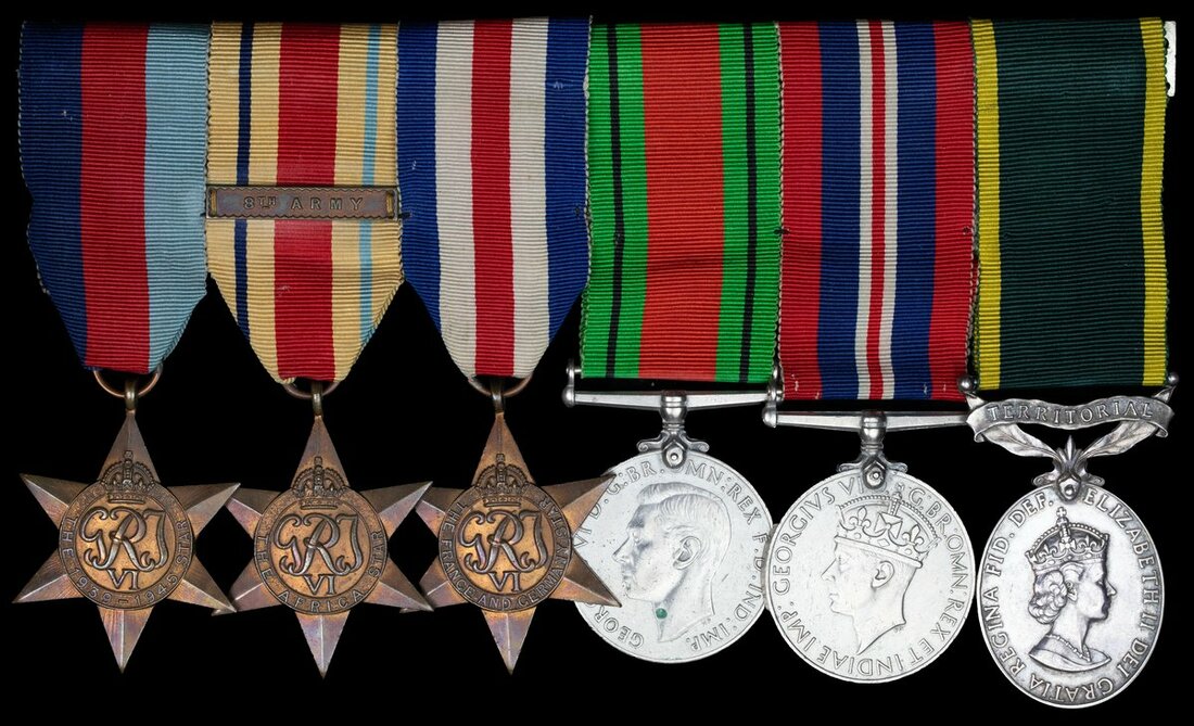 1939-45 Star; Africa Star, clasp, 8th Army; France and Germany Star; Defence and War Medals 1939-45; Efficiency Medal, E.II.R. Territorial, (22536219 W.O.Cl.2. B. F. Cannon. RA.), mounted as worn, good very fine (6)