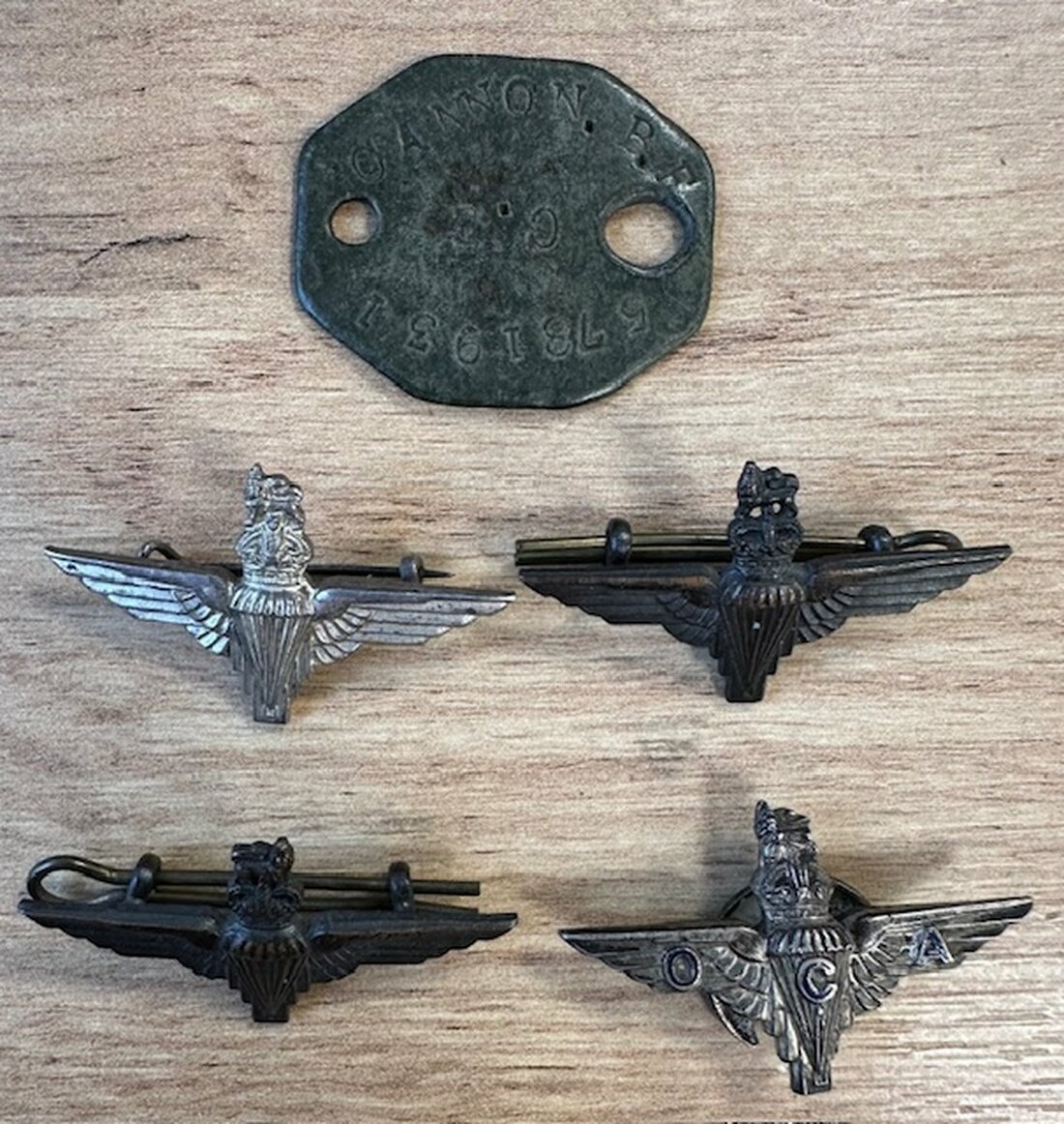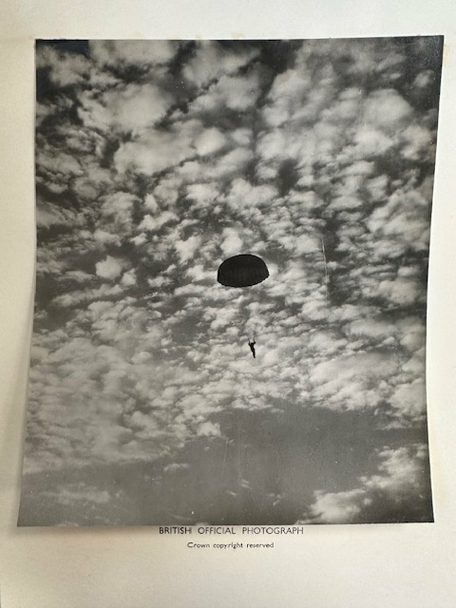 Sold together with his Wartime pressed card identity tag to '5781931 Cannon B. F.', three cap Badges, collar Badges, OCA Para Wings, bullion unit Badge and WINGS, his copy of Not in Vain, with outer card envelope for postage to his wife, inscribed in ink, together with his photograph album, to include a plethora of unpublished scenes of the recipient during the Second World War, newspaper cuttings, Para Regimental Association Membership and documents, this last a notable source of wartime images for the unit.