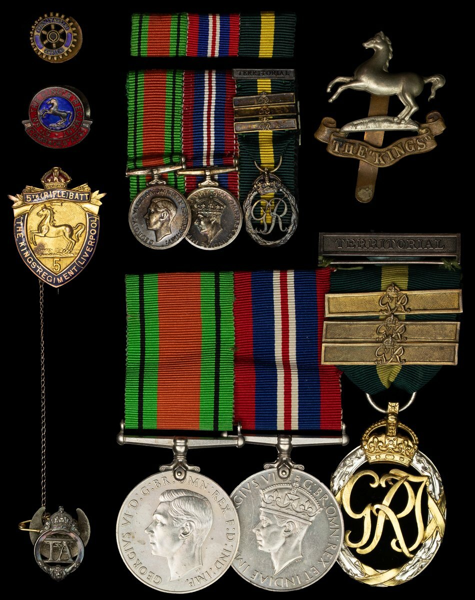 Defence and War Medals 1939-45; Efficiency Decoration, G.VI.R., Territorial, 3 clasps, reverse dated '1941', with integral top 'Territorial' riband bar very fine (3)