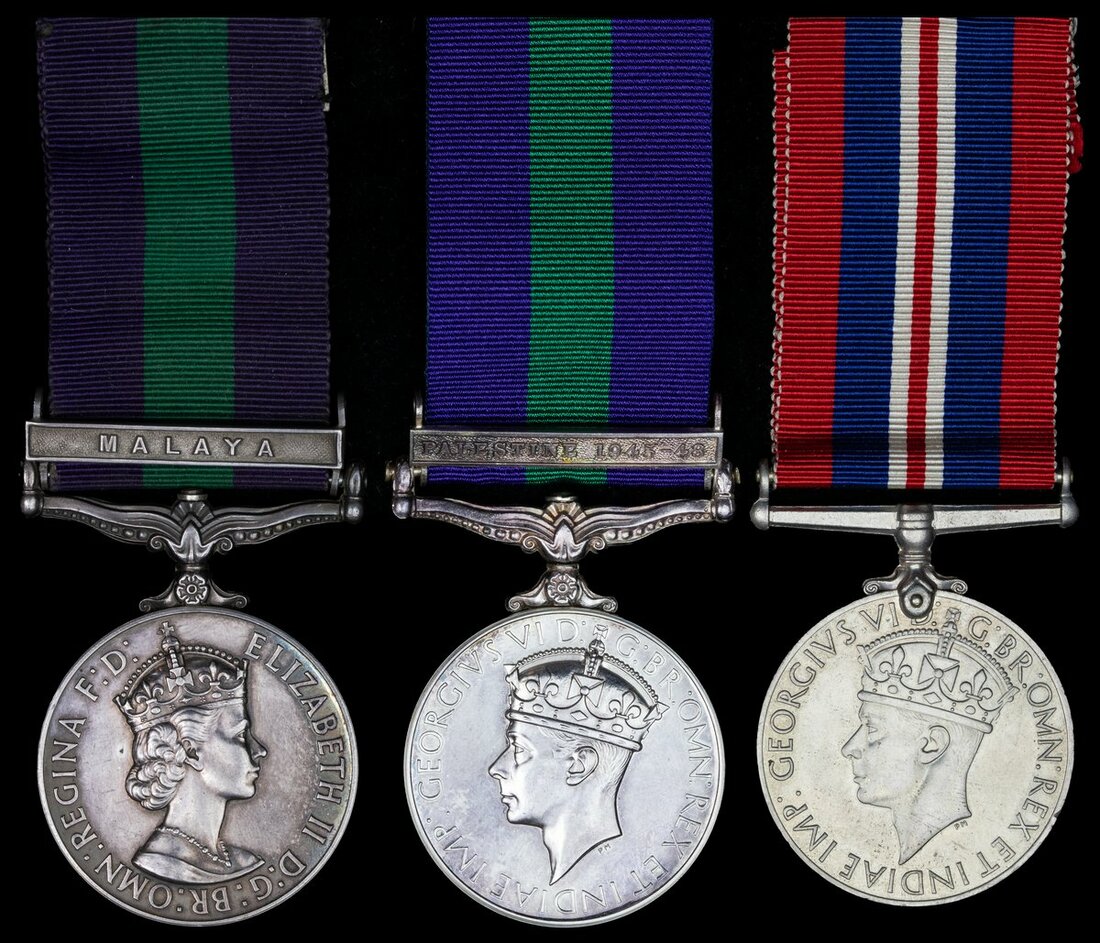 Derrick Frank Garby was born on 13 October 1926 in Coventry to Florence and Frank Garby and later enlisted into the 2nd Battalion, Royal Warwickshire Regiment. He died on 23 August 1947 in a road accident whilst serving in Palestine, he was 19 years old. He is buried at the Ramleh War Cemetery, Israel. Sold with copied research, a cardboard box in which the medals were issued and a newspaper cutting reporting his death.