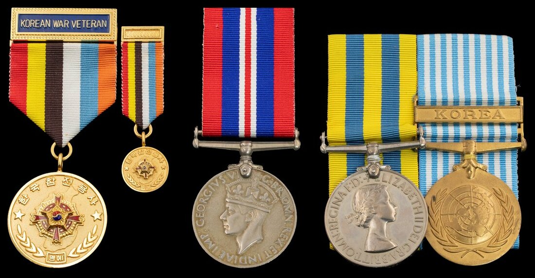 War Medal 1939-45; Korea 1950-53 (Lt R N Jones RN), marked 'R' for Replacement; U.N. Korea 1950-54; Korean Veteran's Association Medal, in case of issue with relevant miniature, good very fine (Lot)