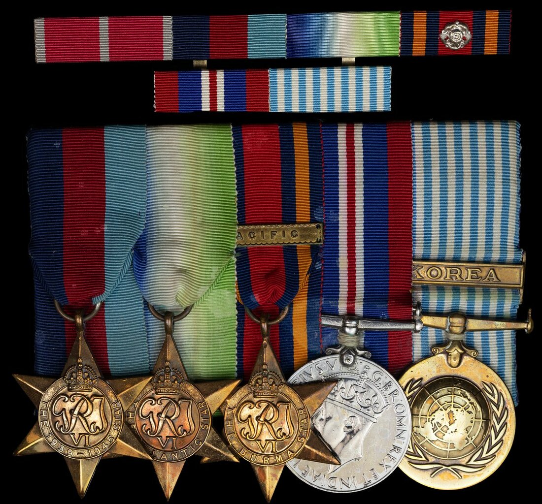 The Most Excellent Order of the British Empire, Commander's (C.B.E.) neck Badge, Military Division, silver-gilt and enamel, in its original Garrard & Co. case of issue; 1939-45 Star; Atlantic Star; Burma Star, clasp, Pacific; War Medal 1939-45; U.N. Korea 1950-54, the last five mounted as worn, sold together with a corresponding riband bar, good very fine (6)