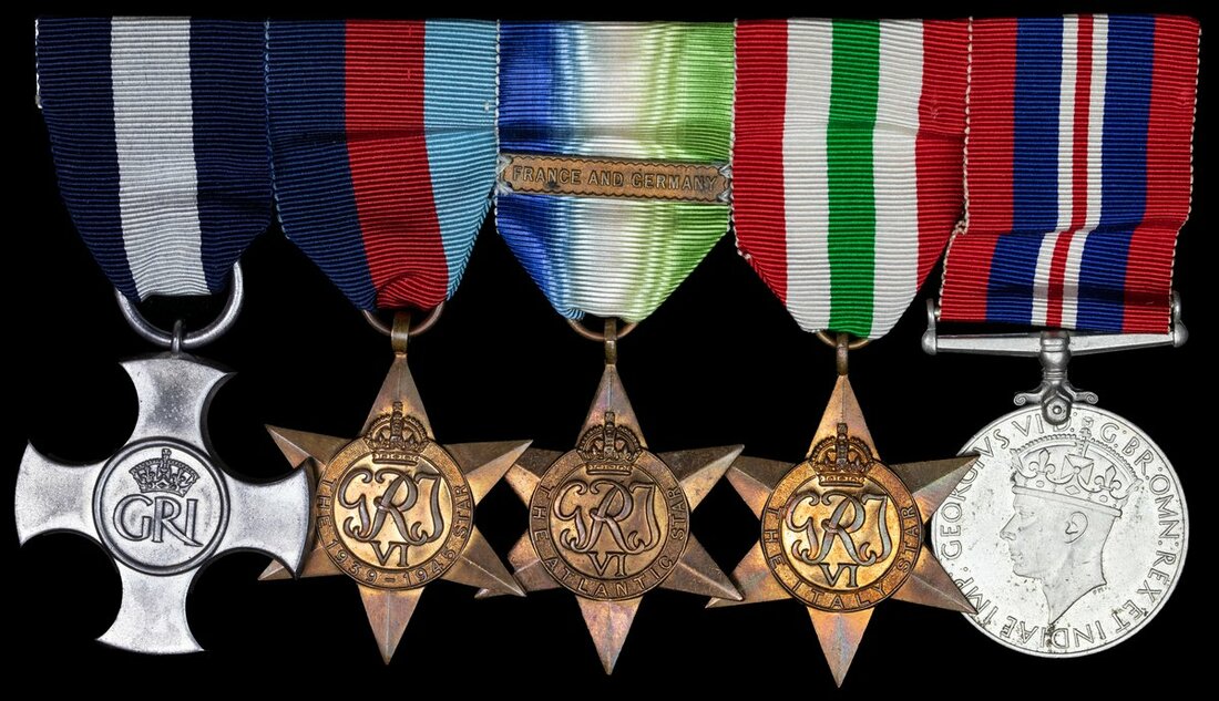 Distinguished Service Cross, G.VI.R., the reverse officially dated '1945', hallmarks for London 1945, the reverse additionally engraved 'Lieut. R. C. Wiles. R.N.V.R.'; 1939-45 Star; Atlantic Star, clasp, France and Germany; Italy Star; War Medal 1939-45, mounted as worn, very fine (5)
