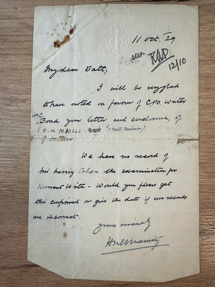 William Charles Francis Bond was born in Portsmouth on 7 September 1896 and entered the Royal Navy as a Writer 3rd Class in November 1914, direct from his job in the Caledonian Railway.