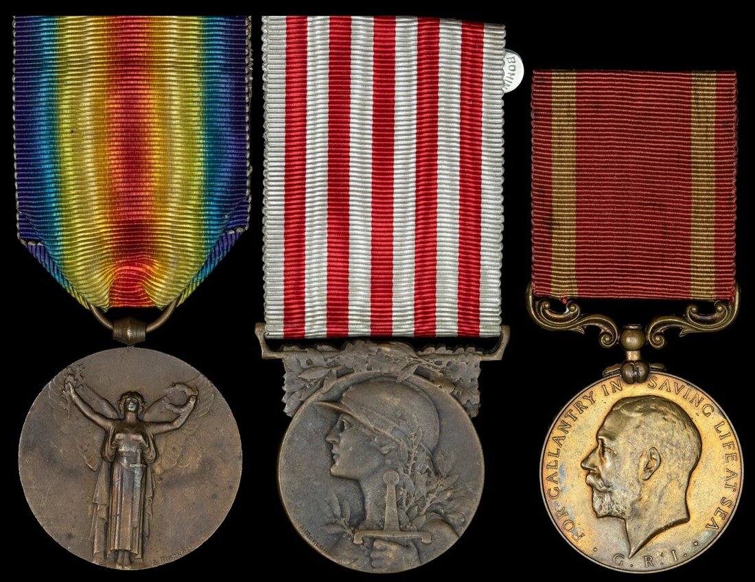 Bibillard was one of seven men awarded a Sea Gallantry medal for his bravery. He is known to have remained in the area after the closure of the Beni-Eelkaj mines and died in the area at the age of 72; sold together with copied research and a copy of the an article entitled A Tale of Everyday Heroism by Malcom Wilson published in The Life Saving Awards Research Society relating the story of the group.