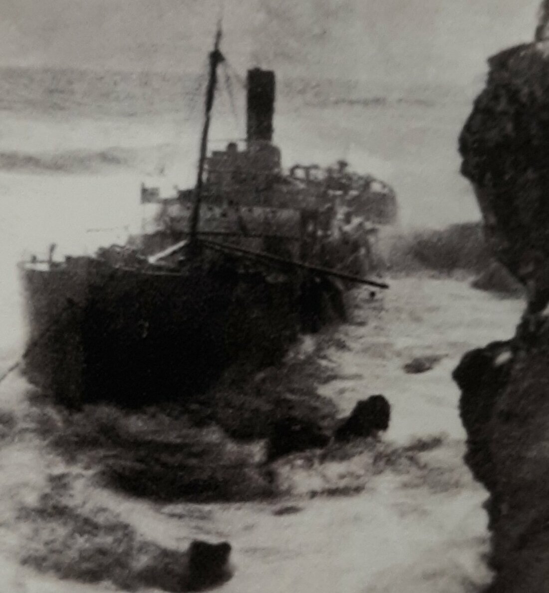 Unfortunately, on the morning on 10 February 1916 Glenroy anchored at Bougie Bay to await the arrival of the pilot. Unfortunately before Ribillard could join them a violent storm blew up which worried the manager of the mining station Mr Blake-Thomas, in a moment of remarkable foresight he insured that ropes and lights were made ready should the anchor break. Members of the mining company kept watch over the vessel through the night and during his own watch Blake-Thomas heard the anchor cable snap.