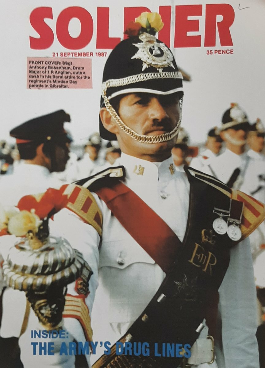 An unusual Drum Major's B.E.M. awarded to Staff Sergeant A. H. Bokenham, Royal Anglian Regiment, who both led the band and served Operational with his Battalion for two years in Londonderry, Northern Ireland and then led the Corps of Drums at the Guard Mounting Ceremony in Gibraltar after Operation Flavius, 'in the full flare of the international media'