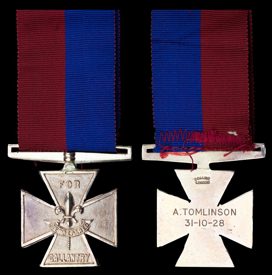 The Scouting Gilt Cross for gallantry awarded to Scout A. Tomlinson, 12th Worksop Troop, Scouts Association