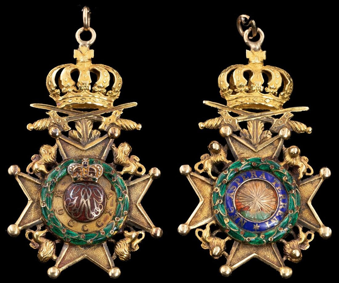 (x) The Royal Guelphic Order, K.H. (Military) Knight’s breast Badge, 44mm including crown suspension x 29mm, gold and enamel, enamel loss and chipping, nearly very fine