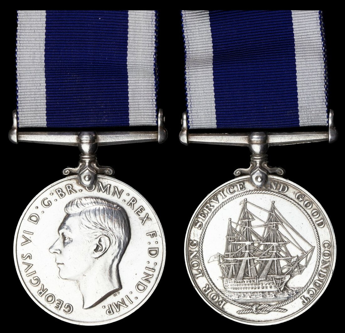 Royal Navy L.S. & G.C., G.VI.R. (MX. 47556 C. A. W. Benfield. E.R.A.A. 1. H.M.S. Belfast.), note additional 'A' to rank, minor pitting very fine