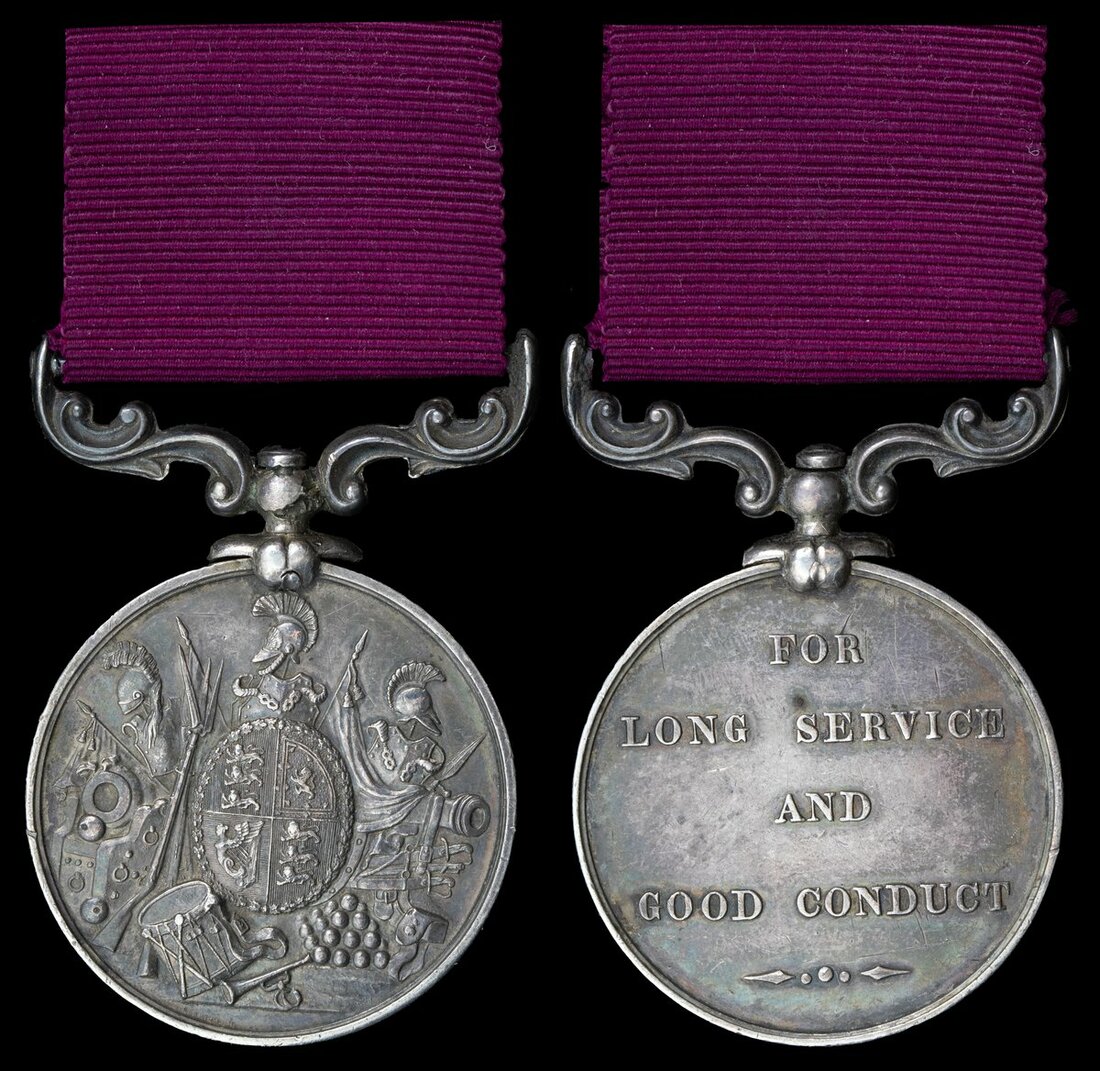 George Jarrett was born and raised in Chatham, Kent and worked as a farm labourer before he enlisted to join the Royal Artillery, aged 19 years old. He enlisted on the 29 December 1878 and served solely at home for his entire military career. On 7 April 1891, he was promoted to Corporal. From August 1891, Jarrett served in Belfast, from June 1892 he served at Cork, and from November 1893 he served in the Southern District before finishing his career in the Scottish District, predominantly serving at Edinburgh. He was discharged on 24 January 1895 and this medal was his sole entitlement.